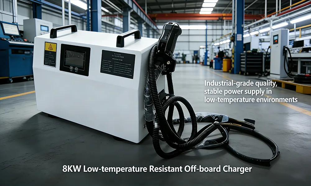 Den 8KW lågtemperaturbeständiga off-board-laddaren är en högeffekts oberoende laddningsenhet speciellt designad för lågtemperaturmiljöer. Dess kärnfunktion är att omvandla trefas växelström till stabil likström, vilket effektivt laddar kraftbatterierna i industriell utrustning som elektriska gaffeltruckar och staplare.